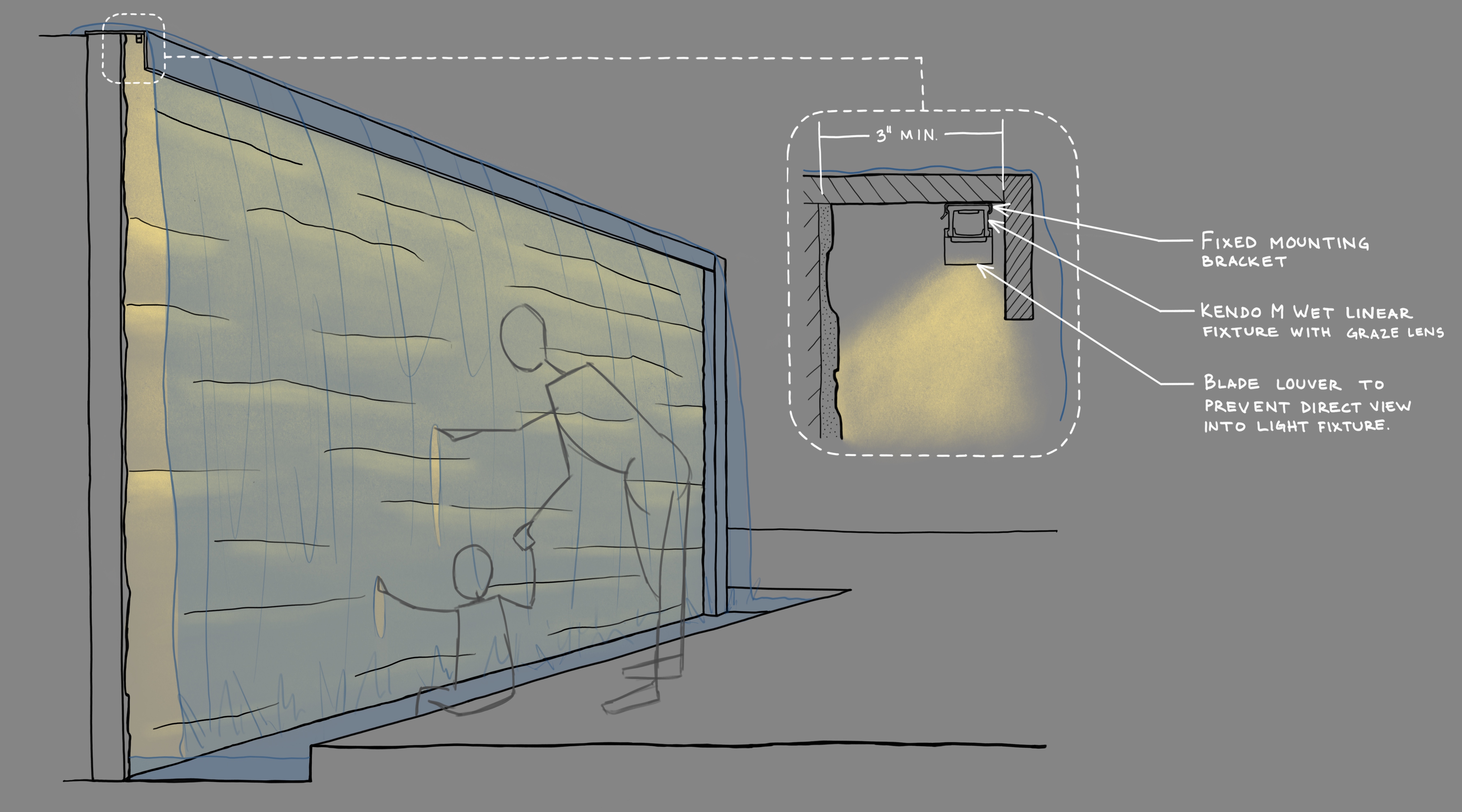 The Kendo M Wet (featured here) along with all Kendo wet rated products are ideal for creating accents, bringing out the texture on surfaces, and water features.