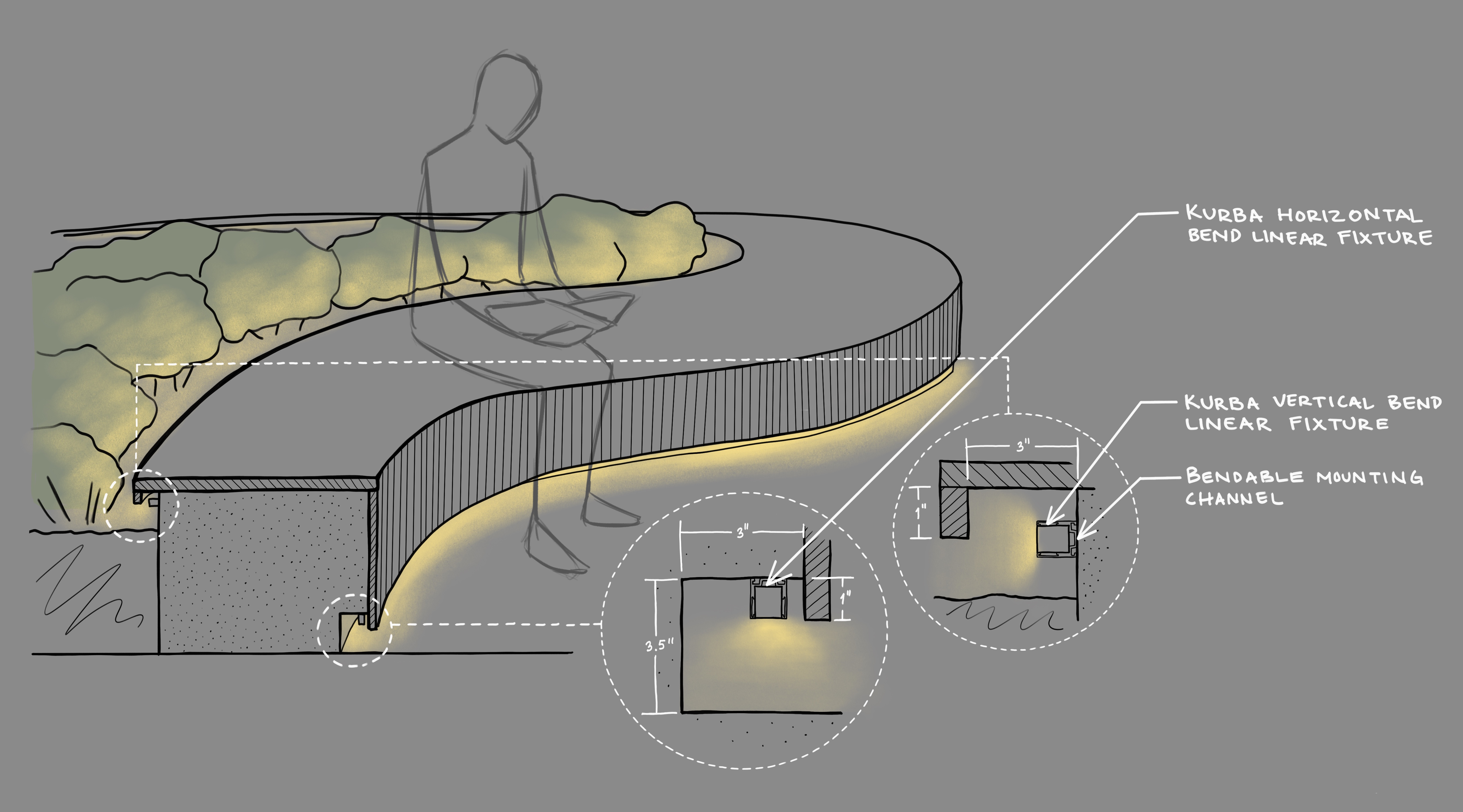 Bring dimension to outdoor hardscapes using architectural lighting details with Luminii’s IP68 rated Kendo M Wet Linear profile.